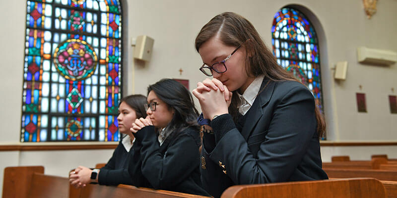 The Academy of the Holy Family is a community of faith. The life of prayer lived by the Sisters of Charity is a powerful example to the students. Students take religion classes all four years at the Academy, including Basic Catholicism, Sacred Scripture, Church History and Morality. Recognizing that there is truth to be found in all the major religions and established faith traditions, we encourage all students to develop their faith life in their beliefs, through prayer, service and mutual respect.