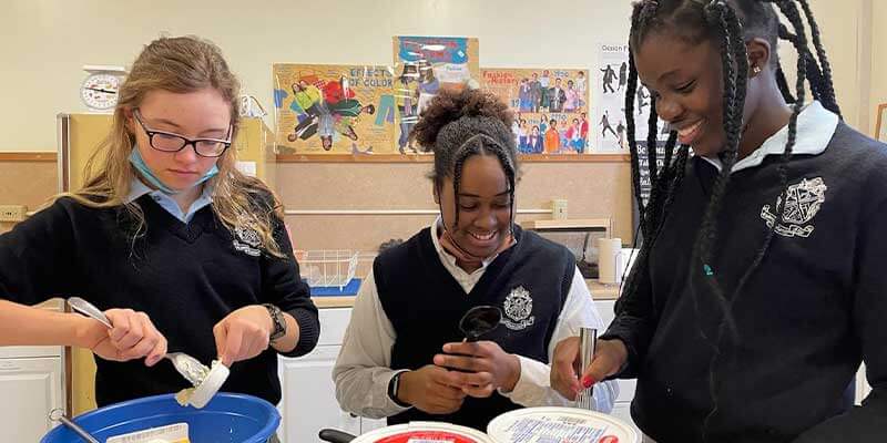 Academy of the Holy Family teaches young women life skills that prepare them for family, work life, and careers by empowering individuals to manage the challenge of living and working in a diverse global society. Hands-on projects and daily work are the major emphasis for grading. Topics include, among many others, time management in school and in life, home décor, etiquette, job applications and interviews, auto care, financial skills (loans, credit cards, balancing checking accounts), health and safety, and the secrets of a beautiful marriage.