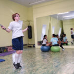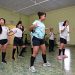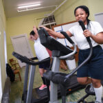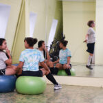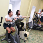 Then, also on the fourth floor, there used to be a wall separating the health classroom from the exercise room. This wall has now been removed, the health classroom has been moved to a third floor classroom, and this large room has now become an activity room. Within this room are exercise equipment, large mirrors across one wall, a large 72 inch TV, and much spacious area for the students to dance and release their energy. This activity room has recently been opened to the students, and they are enjoying it! They have been doing some activities there during gym class, as well as going up to exercise in the evening.
